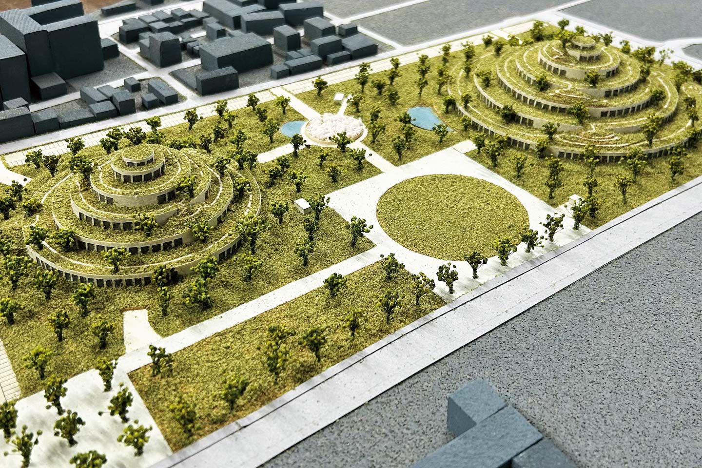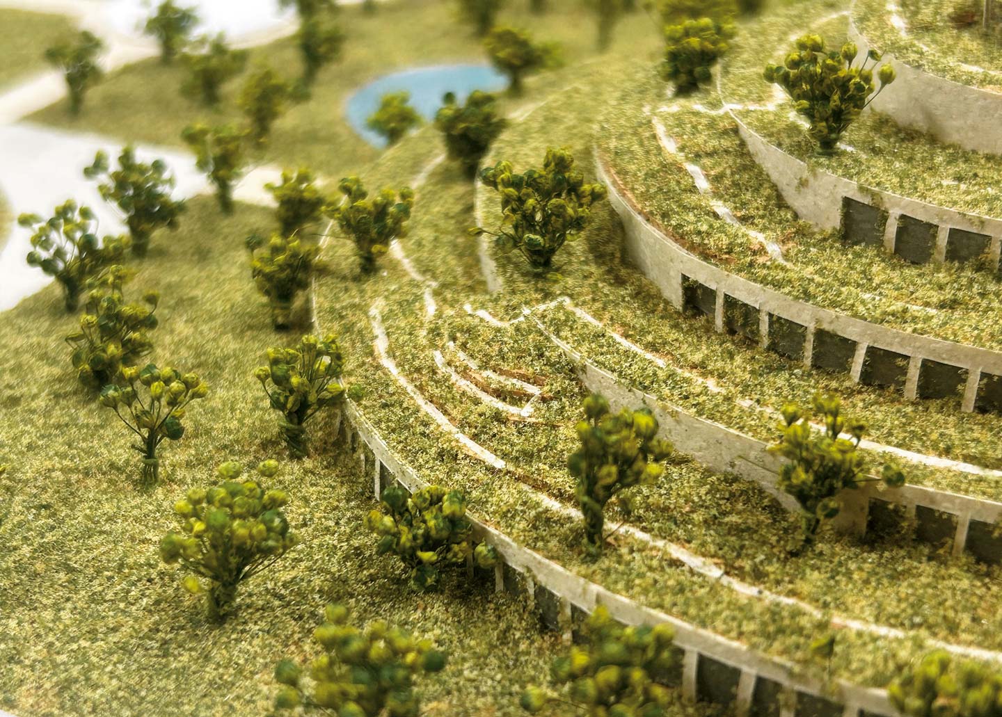 本研究は、心と身体を整え健康を保つことを目的に、スポーツを通じて身体を動かす「体育の山」と芸術・食・学びを内包する「文化の山」を複合施設として計画した。さらに、計画地全体を植栽し、2つの山に登山道を設けることで、擬似登山のような立体的な運動を取り入れ、都市にいながら自然とのつながりを感じられる新しい生活のあり方を提案した。